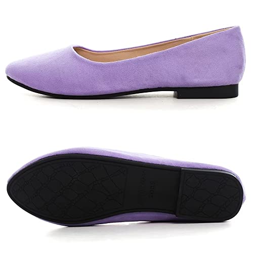 LUXINYU Women's Slip on Flats,Pointed Toe Solid Classic Ballet Shoes Soft Comfortable Suede Casual Flats 5