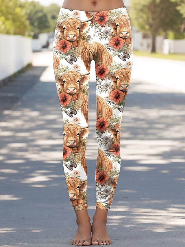 HOT ! Women's Leggings Vacation Vintage Fashion Ankle-Length High Waist Floral Graphic Animal Printing Soft Breathable Stretchy Vacation Casual Daily Black Yellow Pink Orange Spring Fall Slim Fit