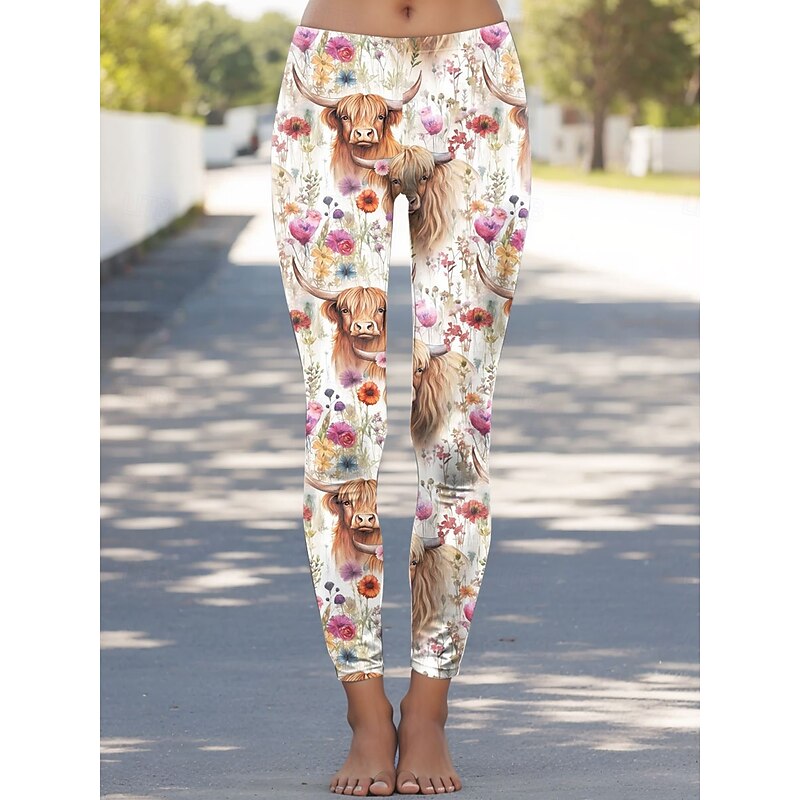 Women's Leggings Vacation Vintage Fashion Ankle-Length High Waist Floral Graphic Animal Printing Soft Breathable Stretchy Vacation Casual Daily Black Yellow Pink Orange Spring Fall Slim Fit 3