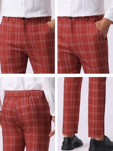 Lars Amadeus Men's Dress Plaid Pants Flat Front Printed Business Check Trousers