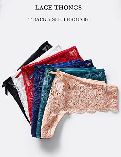 Kiench Teens Lace Thongs T Back Junior Girls' Low Waist See Through Panties 6-Pack 6
