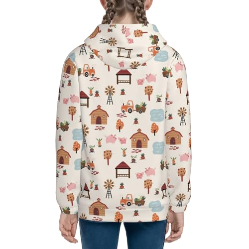 Cartoon Village Map Kids Pullover Hoodies Boys Zip Up Sweatshirts Girls Athletic Clothes with Pocket