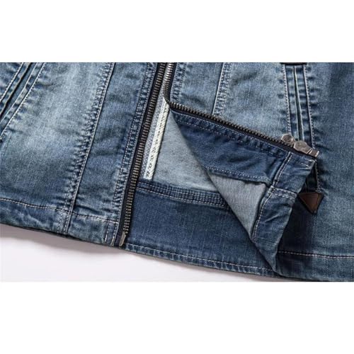 Men's Slim Fit Denim Jacket Zipper Pocket Motorcycle Style Jean Jacket 6