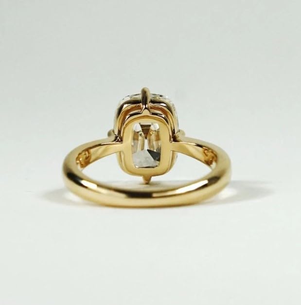 • Handmade 3 CT Vintage Old Mine Cushion Cut Diamond Engagement Ring, Solitaire Daimond Ring, Wedding Ring, Compass Prong Setting, yellow gold plated