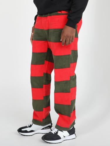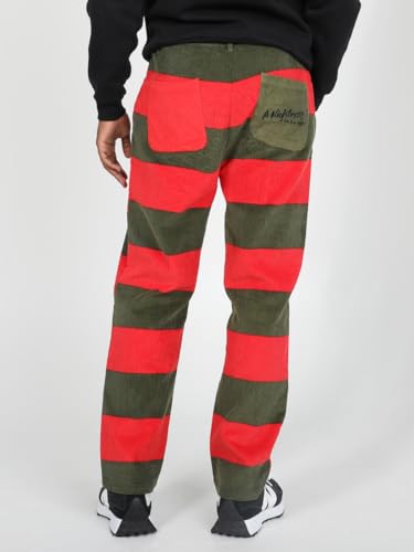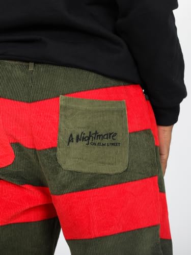 • CUSTOM DESIGN: Make a bold statement with these corduroy pants, featuring the iconic red and green stripes and the Nightmare on Elm Street logo embroidered on the back pocket. The custom design captures the chilling essence of the cult classic.
