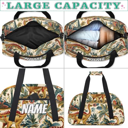 HOT ! Custom Cute Dinosaurs Duffel Bag for Women Men, Personalized Jungle Cartoon Sport Gym Duffel Bag with Name Travel Weekender Overnight Bags
