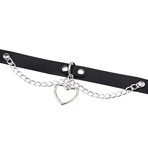 eYLun Women Leather Heart Chain Necklace - Punk Goth Choker Collar 5