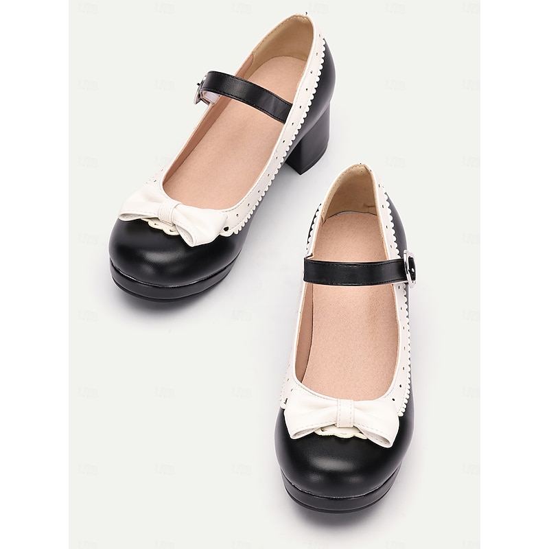 Women's Black and White Mary Jane Heels with Bow Detail and Buckle Strap - Vintage-Inspired Shoes for Parties and Formal Events