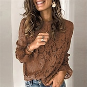 More information about Women's Blouse Lace Tops Plain Daily Stylish Basic Long Sleeve Crew Neck Regular Tops Work Daily Holiday Lace Black Brown Green Spring Fall