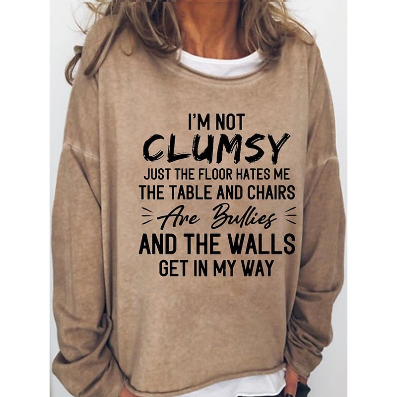 Highlights [Fabric] Crafted from a durable cotton blend, this women's sweatshirt offers a soft, comfortable experience, perfect for keeping warm during the fall and winter seasons. The fabric ensures excellent durability and a cozy, breathable feel suitable for casual wear. [Fit] Emphasizing a loose fit, this oversized sweatshirt delivers both style and comfort, allowing ease of movement. It features a relaxed silhouette that flatters a variety of body types, making it an ideal choice for everyday streetwear. [Design Highlights] This pullover sports a playful and witty printed slogan, bringing humor to your casual ensemble. The round neckline and long sleeves offer a classic look, while the absence of lining gives it a lightweight feel. This design is complemented by a monochromatic palette, available in colors such as gray, light blue, blue, khaki, and black. [Occasions] Perfect for daily wear, sports activities, or relaxed days at home, this sweatshirt provides versatility and fun to your wardrobe. The printed text adds a touch of personality, making it an excellent choice for casual outings with friends or running errands. [Size Range] Available in sizes S, M, L, XL, XXL, and 3XL, this sweatshirt caters to a wide range of body shapes, ensuring an accommodating and comfortable fit for everyone.
