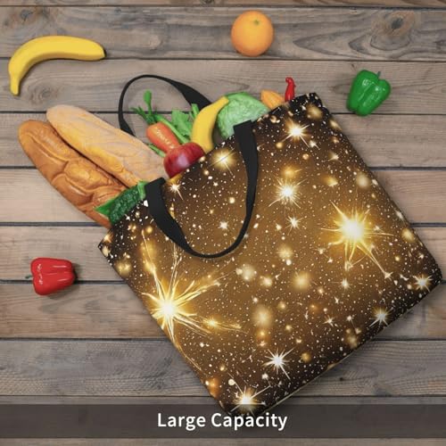 HOT ! (Gold Bling) Large Reusable Tote Bag For Women Foldable Washable Shoulder Bag For Shopping Beach Travel Gym Work Stylish Gift Bag