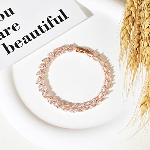 Tennis Bracelet for Women Wedding Bracelets for Brides Ears of Wheat Cubic Zircon Fashion Jewelry Gifts for Female | Silver/Yellow Gold/Rose Gold Plated 6