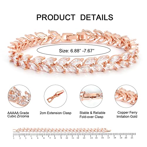 • ✨【Tennis Bracelet】 - The rose gold wedding bracelet's length is 6.88 inches (17.5 cm). We will include a 2cm extension buckle and the bracelet's Length is 7.67 inches (19.5cm), It is easy to adjust based on wrist size to get a good wearing experience, and will not fall off easily.