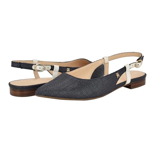 • The Tommy Hilfiger Vamina2 Slingback Flat is sure to make any outfit pop! The delicate back strap with logo embossed detail give the subtle branded touches to enhance your look. You can dress up or down any outfit with these pointed toe flats!