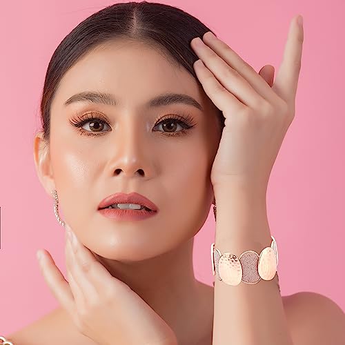 • 【Hammered Bracelets for Women】Add a fantastic touch with hammered bracelet, alternating hammered alloy with glitter piece. This glitter bracelet has wonderful presence.Classic Chic statement bracelet will be perfect for any occasion you want to feel exclusive and contemporary! -perfect for party, prom, cosplay, fashion shows, fancy dress, halloween, wedding or any other occasions you want to be more attractive.