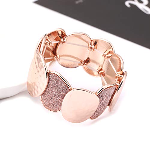 • 【Chunky Stretch Bracelet】Sparkle rose gold /silver bangle the charm bracelet's color is highly lining the skin,the diameter of chunky bracelets is 2.3" in its natural state,weight is 2 OZ.easy to wear.Expandable to fit remarkably wrists.handmade ,never fade,no harm for your health.Upgrade your look with these thick statement bracelets.