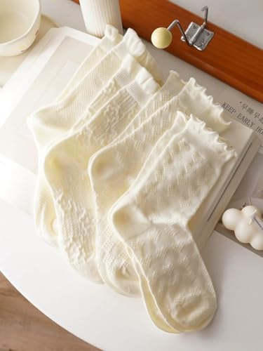 Kelabia 5 Pair Cute Ankle Socks for Women - Coquette Cottagecore Ruffle Frilly Floral Knit Socks - Japanese Crew Causal Y2K 7