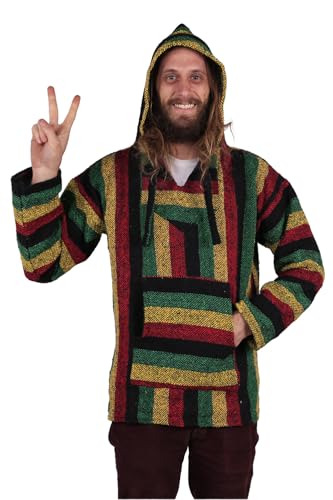 HOT ! Baja Joy Eco-Friendly Pullover Hoodie Woven Striped Baja Rasta