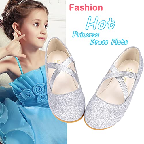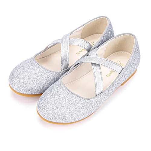 Girls Glitter Ballerina Dress Shoes Mary Jane Ballet Flats for Girls Wedding Party Back to School with Elastic Strap 6