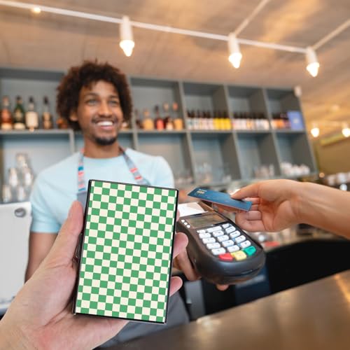 Brand: KUJKBFWJColor: Green CheckeredMaterial: AluminumPattern: CamouflageSpecial Feature: Card Holder, Lightweight, Photo & ID Holder, RFID Protected, WaterproofSuitable size:This Metal Credit Card Holder for women measures 3.78 x 2.6 x 0.43 inch, small and lightweight, fits perfectly in your pocket and purse. Accordion style card slots provide better organized push cards out easilyLarge Capacity: The credit card holder can store up to 6-8 cards and some cash, including credit cards, ID, and business cards. Its organized interior ensures easy access to all your essentials without the bulkRFID Blocking Protection: This rfid credit card holder stay secure with advanced RFID blocking technology that protects your cards from unauthorized scans and potential data theftHigh Quality Materials: This cute wallet is made of superior aluminum materials , smooth, anti-fray, waterproof, stain-resistant, not easy to fade, snug to the touch and not easily deformedPerfect Gift οΌThe cute credit card holder has available in multiple style, it is a best gift that you can give it to your family, friends, roommates, colleagues and more on different festivals and occasions Perfect for everyday use. High quality materials and excellent craftsmanship ensure long-lasting durability.