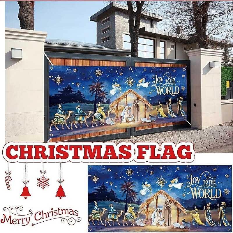 HOT ! Christmas Door Decorations Nativity Outdoor Garage Door Cover Xmas Banner Santa Claus Snowman Large Backdrop Decoration forHoliday Outdoor Garage Door Home Wall Decorations
