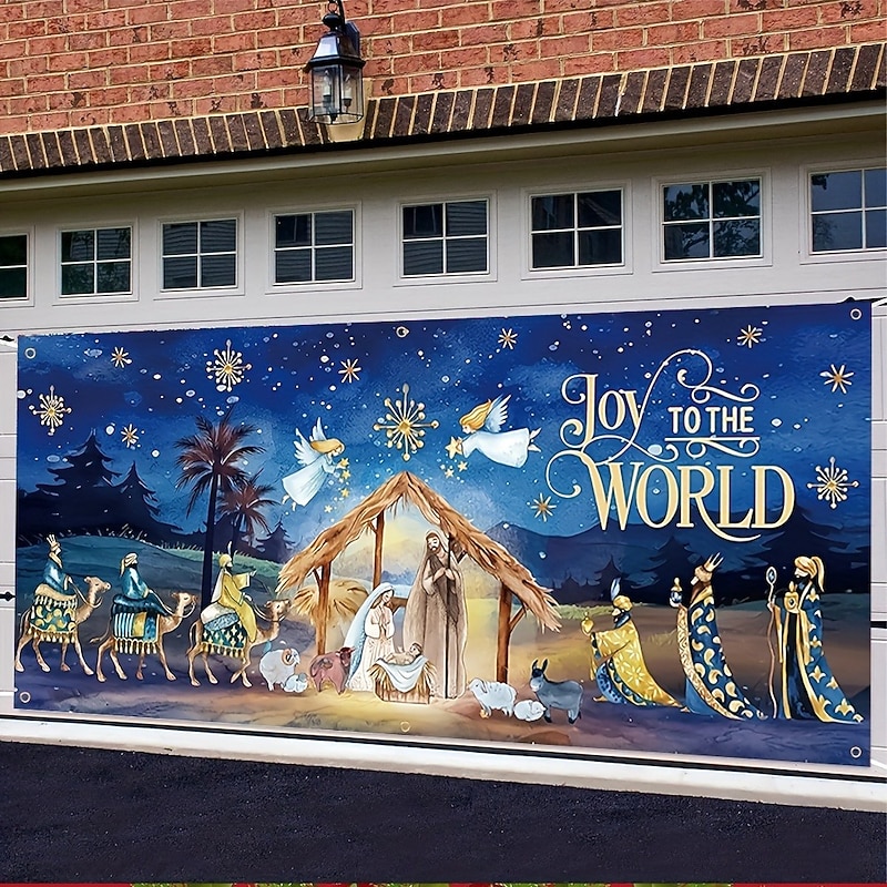 More information about Christmas Door Decorations Nativity Outdoor Garage Door Cover Xmas Banner Santa Claus Snowman Large Backdrop Decoration forHoliday Outdoor Garage Door Home Wall Decorations