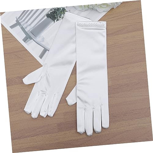 Beaupretty White Flower Girl Gloves with Pearl Decor Long Satin Dress Gloves for Weddings Parties and Pageants 5