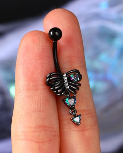 More information about Cocharm Black Skeleton Heart Belly Button Rings Dangle Halloween Navel Rings 14G Belly Piercing Jewelry Stainless Steel