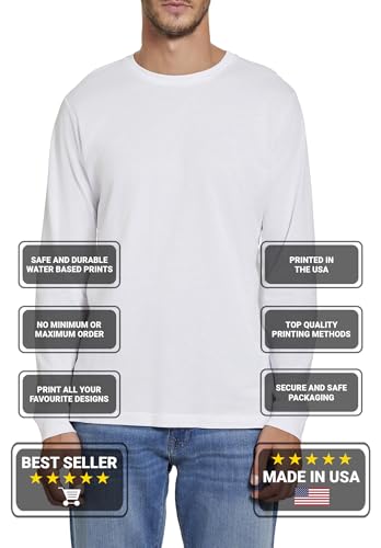 • Supasoft Apparel Personalized long sleeve men shirt with TOP QUALITY WATER BASED DIRECT TO GARMENT DTG PRINT. Front/Back Print. Please choose the options accordingly. Please refer the size chart in the images.