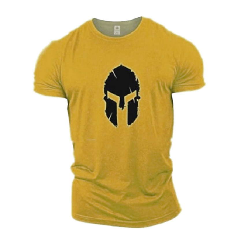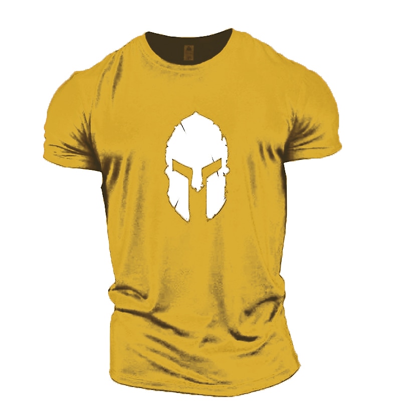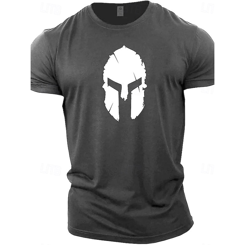 HOT ! Men's Olive Green Short Sleeve T-Shirt with Spartan Helmet Graphic - Warrior Lifestyle Tee