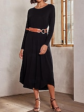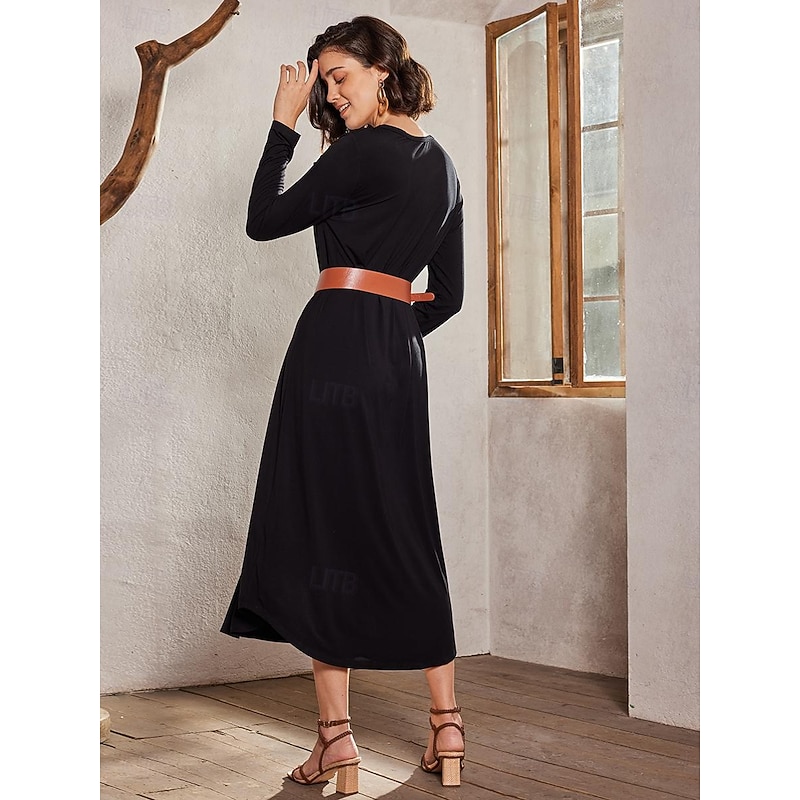 More information about Women's Midi Dress Black Dress Cocktail Dress Sheath Dress Formal Dress Party Formal Cocktail Wedding Party Office Regular Fit Plain Long Sleeve Crew Neck Navy Black Red Green Spring Fall Winter