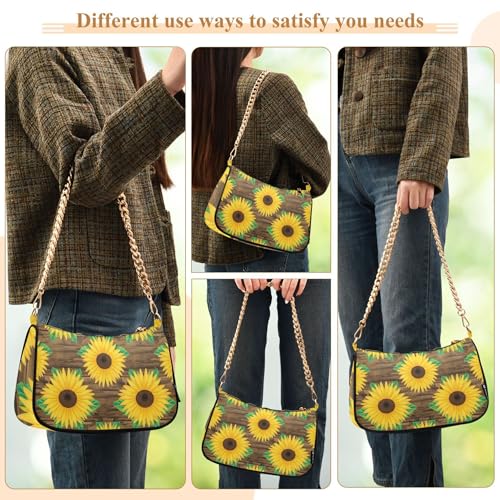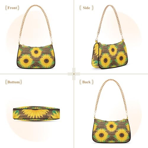 HOT ! Vibrant Sunflowers Wooden Casual Purse Hobo Women Tote Handbags Colorful Aesthetic Shoulder Bag Zipper Closure