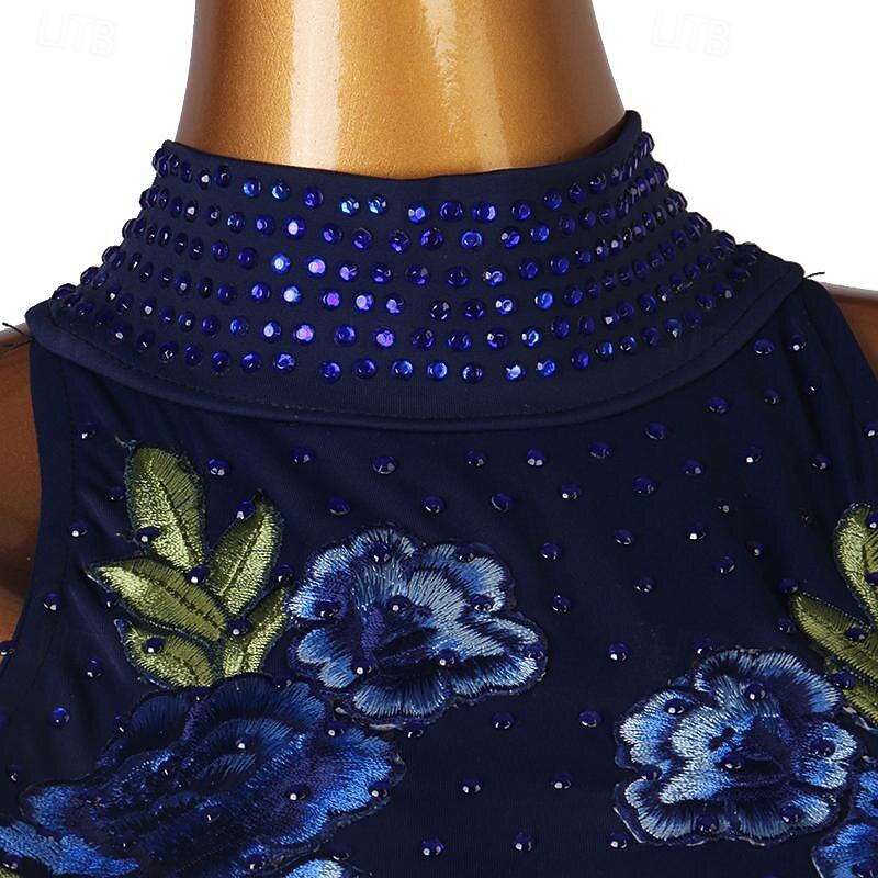 More information about Dance Salsa Latin Dance Dress Rhinestone Women's Girls' Performance Training Long Sleeve High Chiffon Spandex