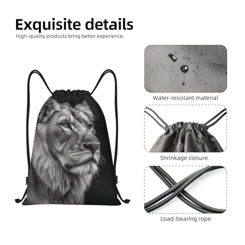 Gray Lion Print Drawstring Bag Backpack Waterproof String Bag Sackpack For Gym Sport 7