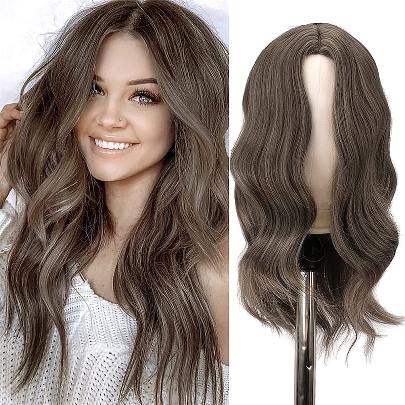 HOT ! Long Brown Wigs for Women 22 inch Brown Long Body Wavy Full Wig Middle Parting Wigs Natural Looking Synthetic Wig for Daily Cosplay