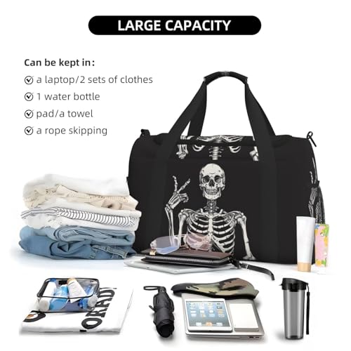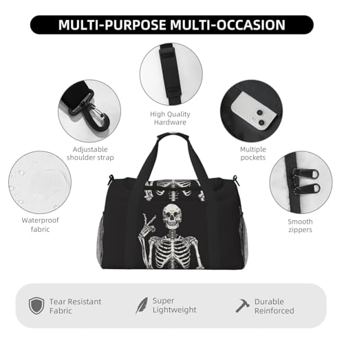 Skeleton Duffle Bag Foldable Travel Tote Bag Carry On Large Weekender Overnight Bags Waterproof Gym Bag For Women Men 5