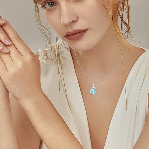 Tree of Life Necklace for Women Sterling Silver Square Turquoise Crystal Tree of Life Pendant Necklace Family Tree Jewelry for Mom Birthday