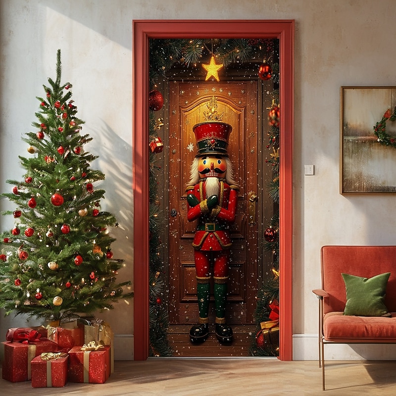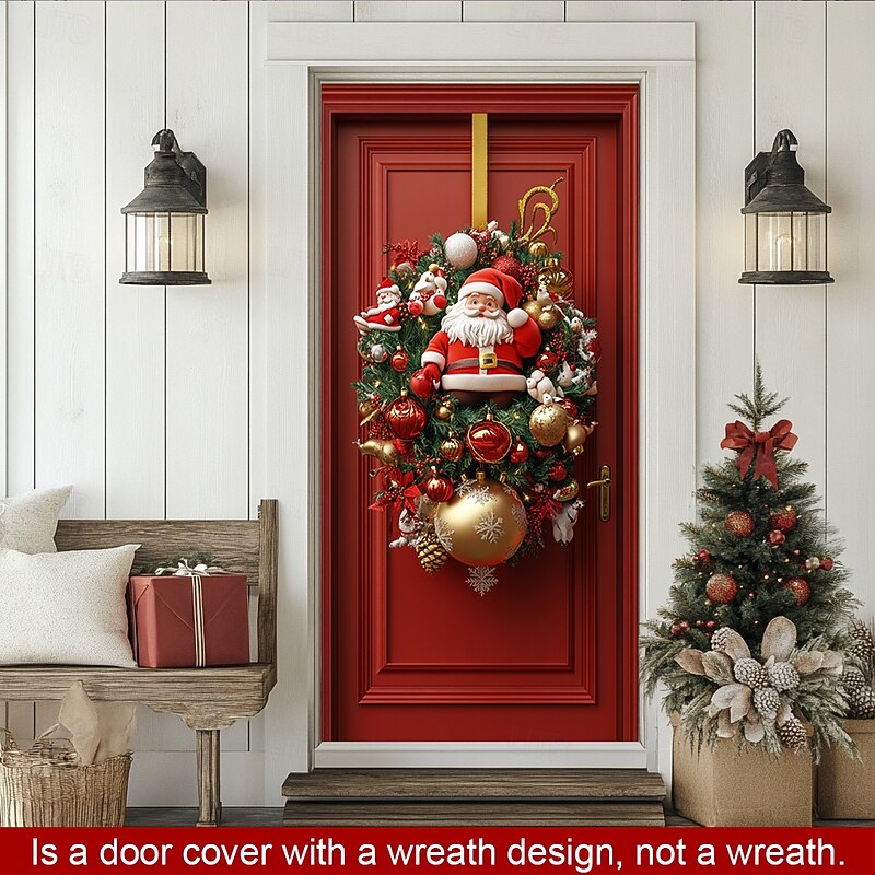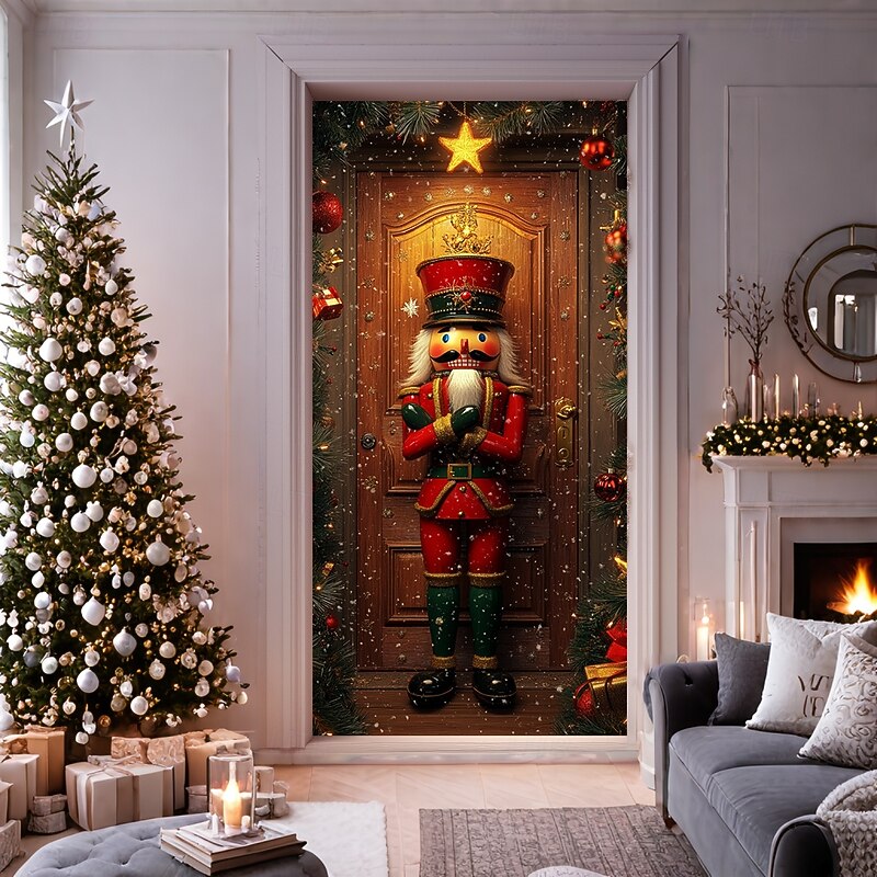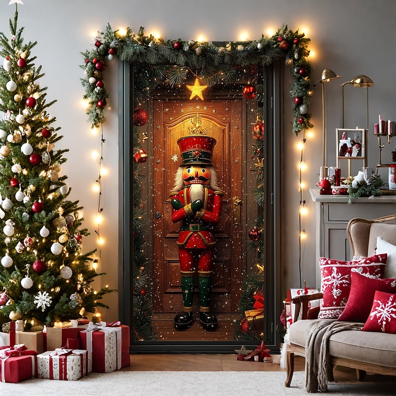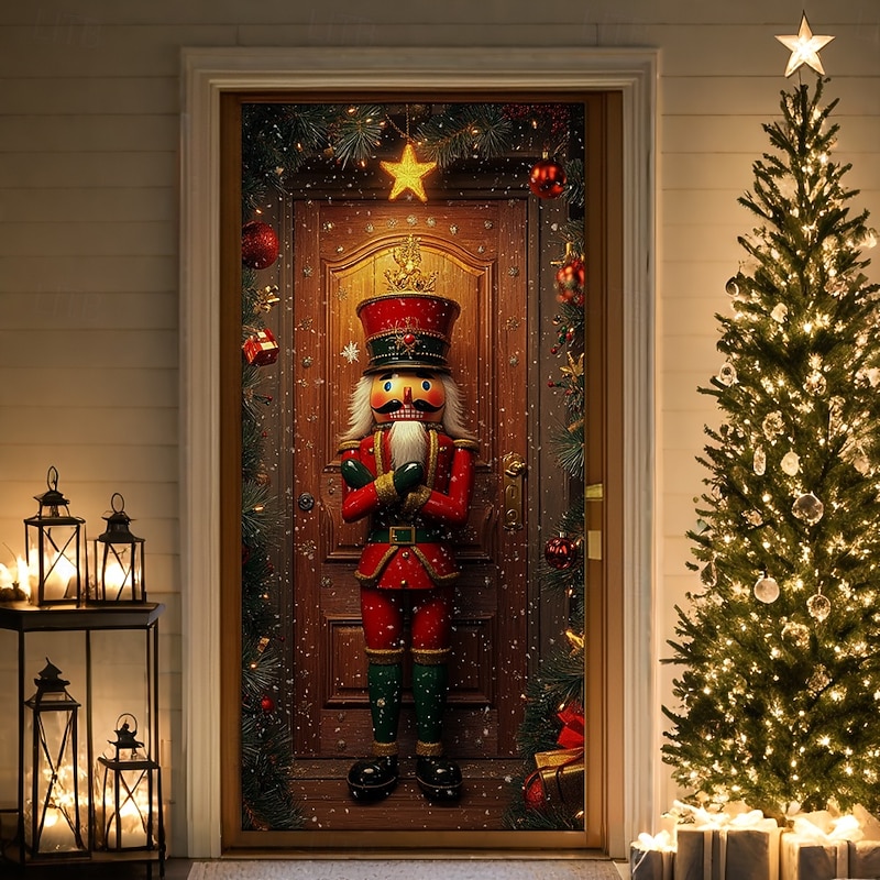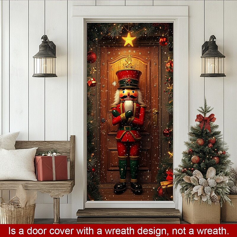 HOT ! Christmas Door Decorations Door Covers Wreath Xmas Tree Santa Nutcracker Door Tapestry Door Curtain Decoration Backdrop Indoor/Outdoor Door Banner for Front Door Farmhouse