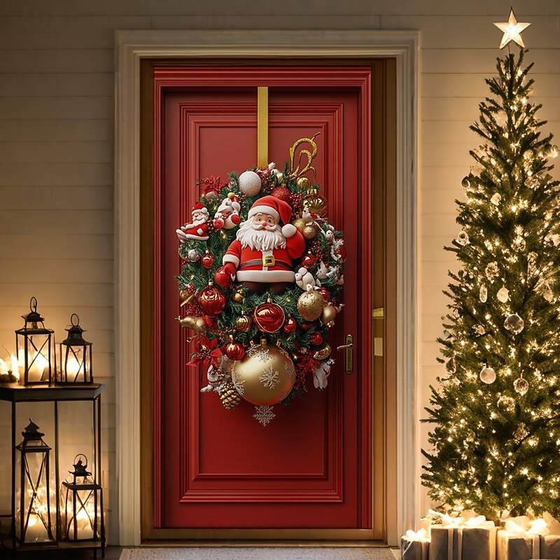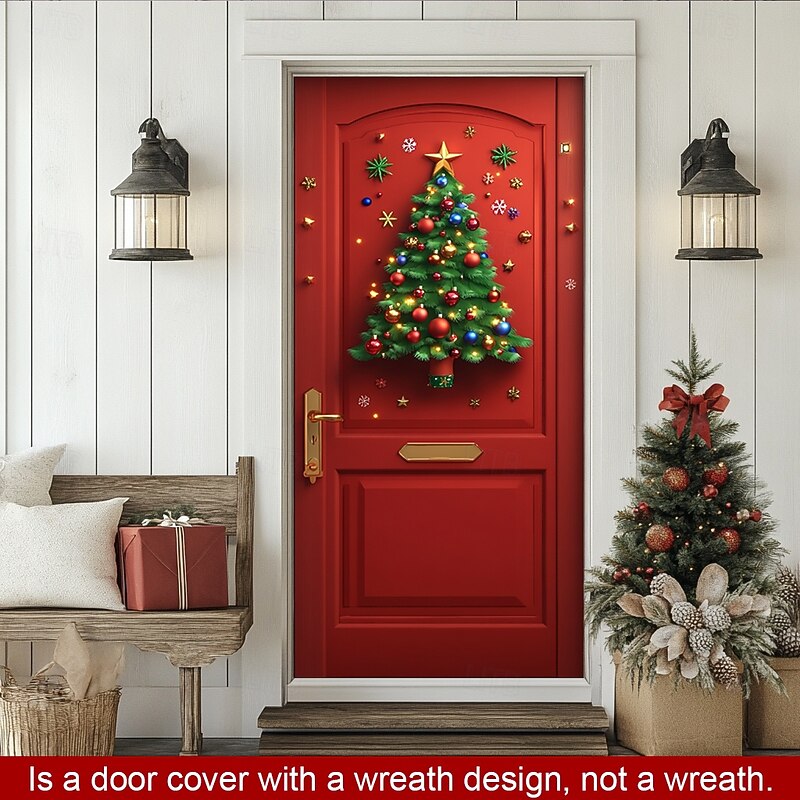 Christmas Door Decorations Door Covers Wreath Xmas Tree Santa Nutcracker Door Tapestry Door Curtain Decoration Backdrop Indoor/Outdoor Door Banner for Front Door Farmhouse 14
