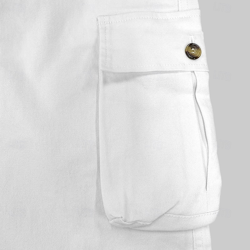 Highlights [Fabric] : Crafted from a durable cotton blend, these cargo pants are designed to provide both comfort and breathability. The micro-elastic fabric ensures ease of movement, perfect for daily wear. [Fit] : These pants come in a regular fit with a mid-waist, offering a comfortable and contemporary silhouette. The full-length design is tailored for both style and practicality. [Design Highlights] : The cargo pants feature multiple spacious cargo pockets, providing ample storage for essentials. The ankles have zippered cuffs for added style, while the adjustable waistband ensures a perfect fit. The button fly adds a classic touch to the overall design. [Occasions] : Perfect for casual outings, daily wear, or holiday adventures, these pants combine functionality with a modern aesthetic. Ideal for both spring and fall seasons, they are suitable for various activities and settings. [Size Range] : Available in a range of sizes from S to 3XL, these cargo pants are designed to fit a wide variety of body types, making them a versatile choice for all. Available colors include Brown, White, Black, and Navy Blue.