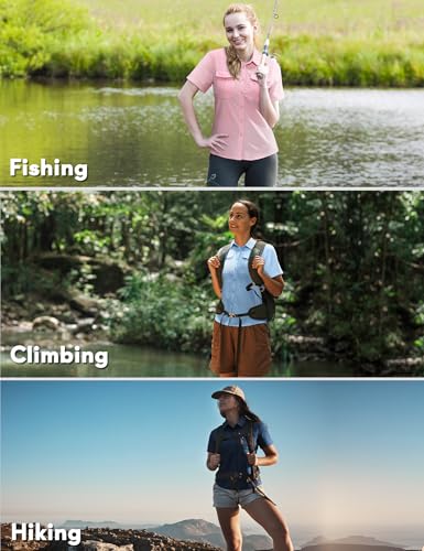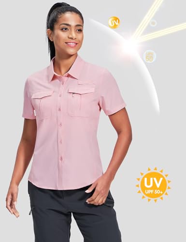 Haimont Women's Sun Protection Fishing Hiking Shirts Button Down Short Sleeve Water Resistant Quick Dry Outdoor 4