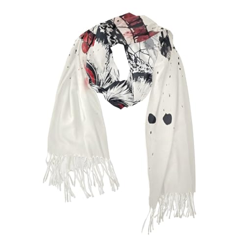 HOT ! Dreamcatcher Owl Cashmere Feel Scarf for Women, Large Single Sided Print Pashminas Shawl Wrap with Tassels