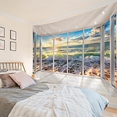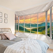 HOT ! Window View Landscape Hanging Tapestry Wall Art Large Tapestry Mural Decor Photograph Backdrop Blanket Curtain Home Bedroom Living Room Decoration