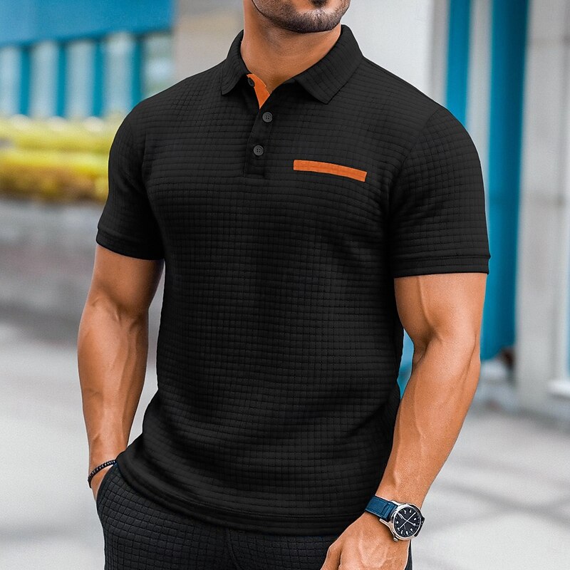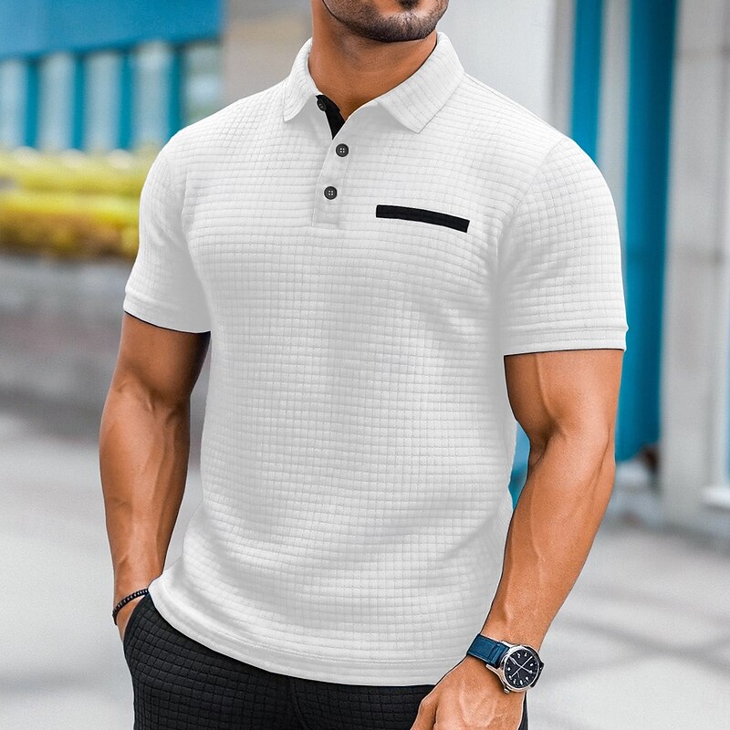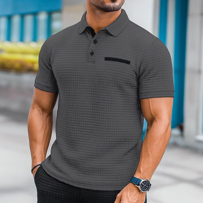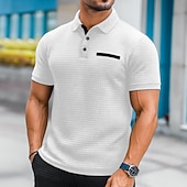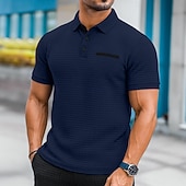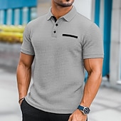 More information about Men's Golf Shirt Waffle Knit Polo Shirt Business Casual Classic Short Sleeve Fashion Modern Solid Color Buttons Summer Spring Regular Fit Black White Light Gray Navy Blue Orange Dark Gray Golf Shirt
