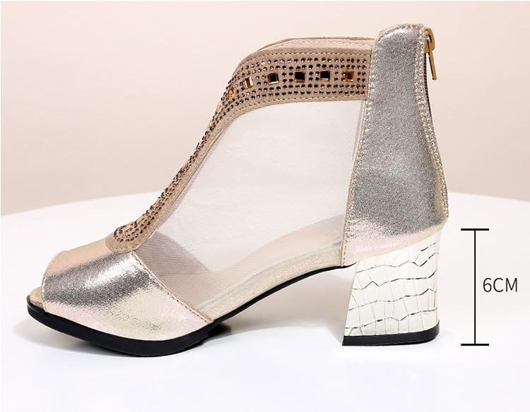 Rhinestone Boots for Women,Women Block Chunky Heel Ankle Bootie,Dance Heels for Women 6