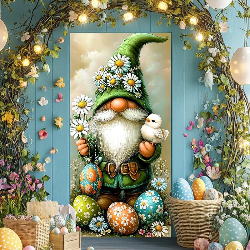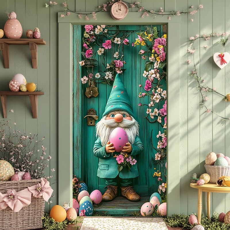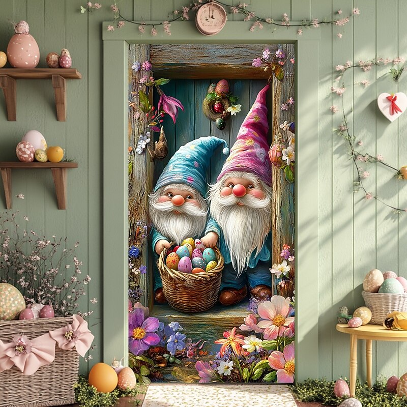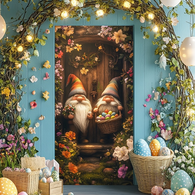 HOT ! Door Decorations Door Covers Gnomes Eggs Door Tapestry Door Curtain Decoration Backdrop Indoor/Outdoor Door Banner for Front Door Farmhouse
