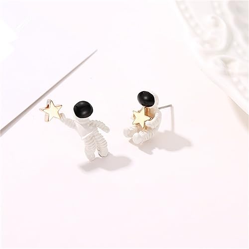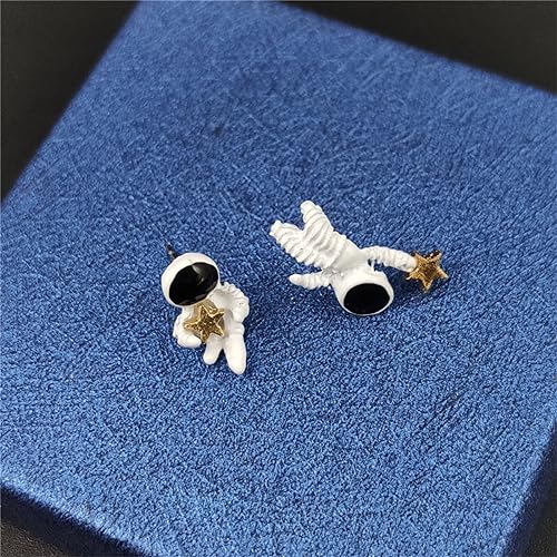 HOT ! Asymmetric Astronaut Star Small Stud Earrings for Women Creative Cute Cartoon 3D White Spaceman Meteor Planet Universe Hypoallergenic Earrings for Space Science Lover Fashion Jewelry Gifts