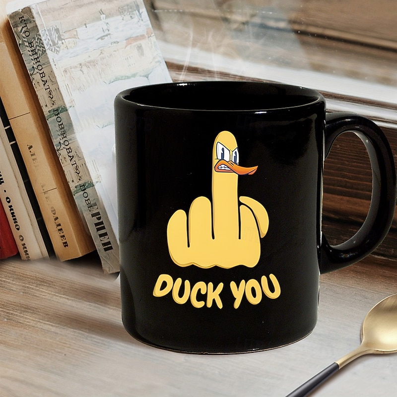 HOT ! Duck You Funny Mug Ceramic Funny Coffee Gift Mug Cup Black Retro Vintage Casual Street Style Mug 11.2oz/330ml