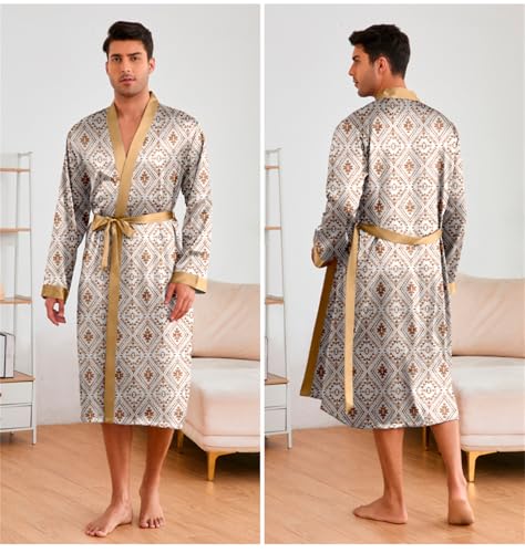 More information about Men Sleepwear Paisley Long Sleeve Kimono Robe With Shorts Satin Nightgown Pajama Sets