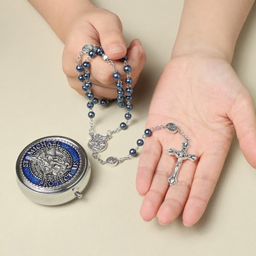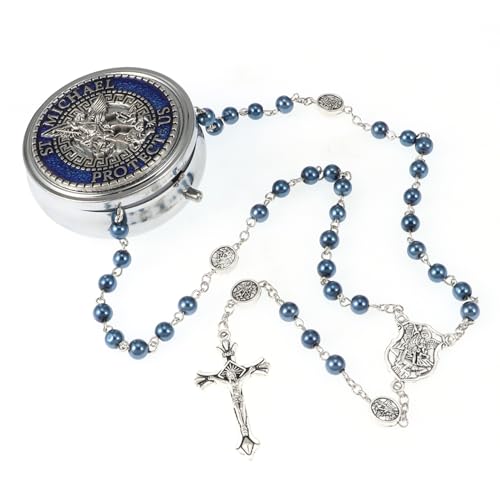 • Package: 1pcs 6mm blue pearl beads catholic Saint Michael rosary necklace. Our father beads are 10mm Saint Michael and Archangel Zinc Alloy metal Beads.